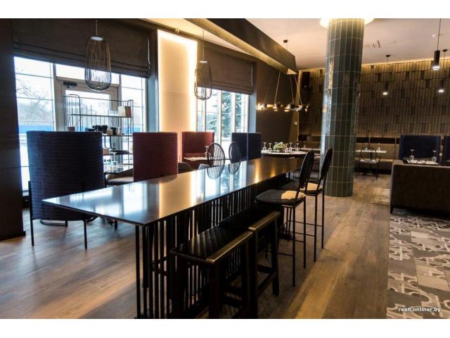 Площадь помещения 248 м2, (отдельная кухня 100 К/Вт, техпомещения, офис), летняя терраса на 100-120 посадочных мест. Отдельный вход. Частная аренда до 08.2023 с преимущественным правом продления на 5 лет. Зал на 75 посадочных места. Панорамные окна с видом на Свислочь. Интерьер сделан в современной классике с элементами лофта. Вся мебель и элементы декора производились по чертежам под заказ.