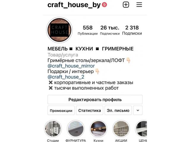 Продам производство современной мебели + инстаграм для продаж (шкафы, кухни, лофт мебель, гримёрные столы/зеркала, и тд).⠀