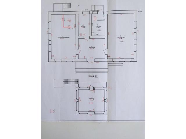 Два торговых зала по 47,7 и 58,2 кв. метров, вестибюль - 27,2 кв. метров, кабинет – 12,3 кв. метра.