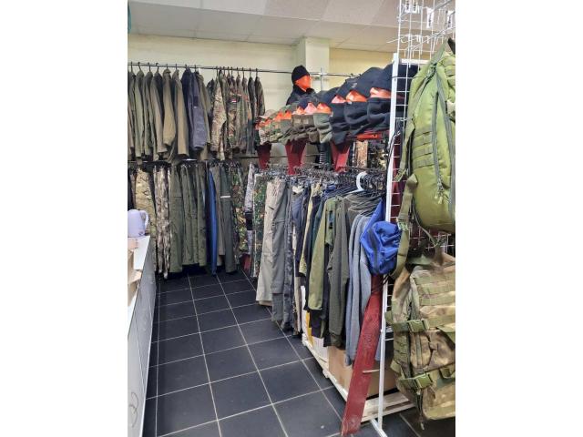 Площадь торгового помещения 40 м2, аренда у владельца здания. В магазине представлен большой ассортимент товара, ориентирован на широкие слои населения с разными запросами: одежда детская, подростковая и взрослая, обувь, костюмы на все сезоны, сумки и рюкзаки, камуфляж и одежда для города в силе милитари.