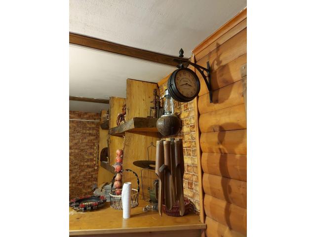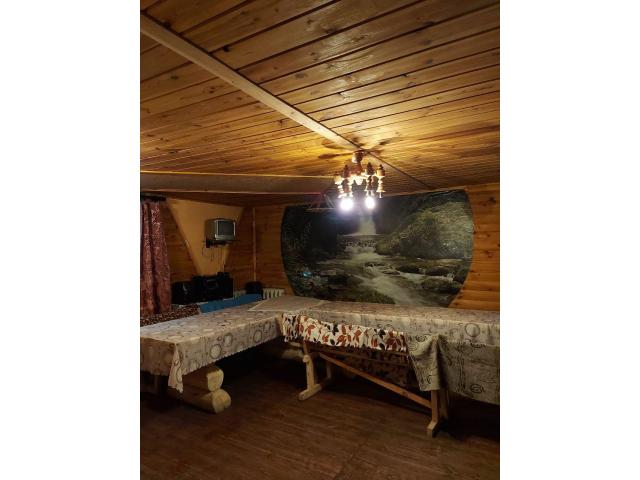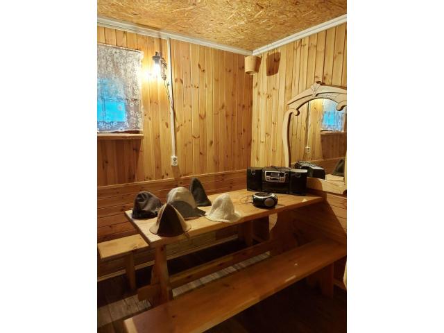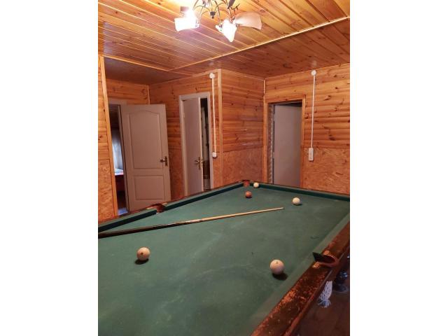 Кухня, гостиная с барной стойкой, предбанник с душем, баня, малый бассейн, зал с камином, бильярдный стол, 8 спален, 2 туалета и балкон. На участке размещены беседка, пруд, огород, сад, теплица, небольшие хоз. постройки.