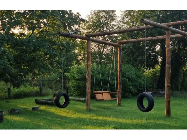 - Две зоны отдыха с качелями