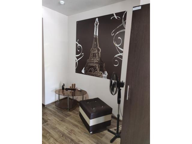 Солярий вертикальный, оборудован новыми мощными лампами (48шт), клиенты оценили, замена ламп ещё не скоро. В помещении с солярием раковина, зеркало, вешалка для одежды, кресло. Много различного оборудования и материала.