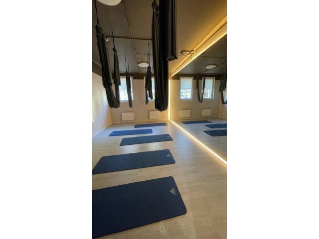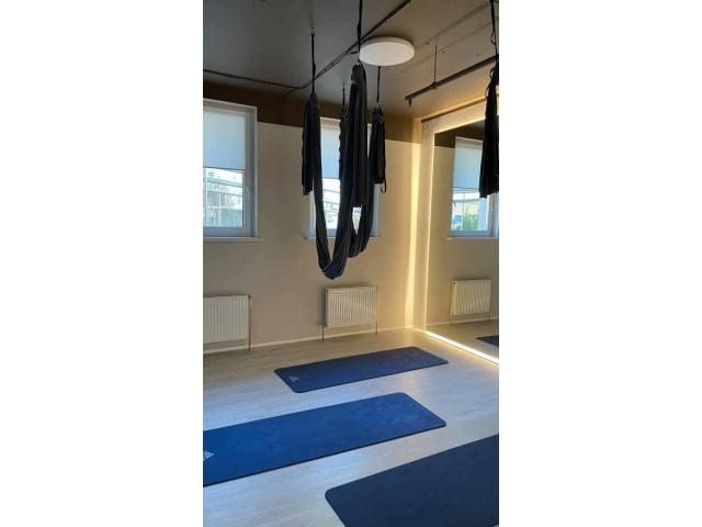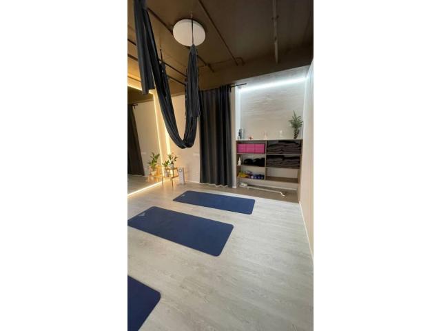 Оборудование в собственности: диван, шкафчик в раздевалке, кубики для йоги, гамаки для эйрстретчинга, посуда, кассовый аппарат 3в1, коврики для йоги.